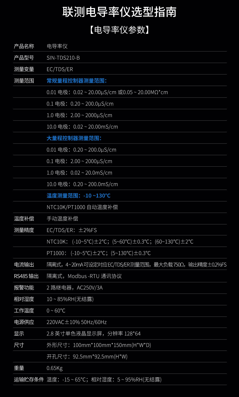 在線電導率儀是新一代全中文微機型儀表,具有全中文顯示、中文菜單式操作、全智能、多功能、測量性能高、環境適應性強等特點。二次表配上常數為1.0或10的電極可測量一般液體的電導率;配上0.1或0.01的電極,能準確測量純水的電導率,特別適用于電廠鍋爐給水和蒸汽冷凝水等高純水電導率的在線連續監測?! ÷摐y_SIN-TDS210-B在線電導率儀 EC儀 TDS 電鍍行業、污水、循環水等檢測_