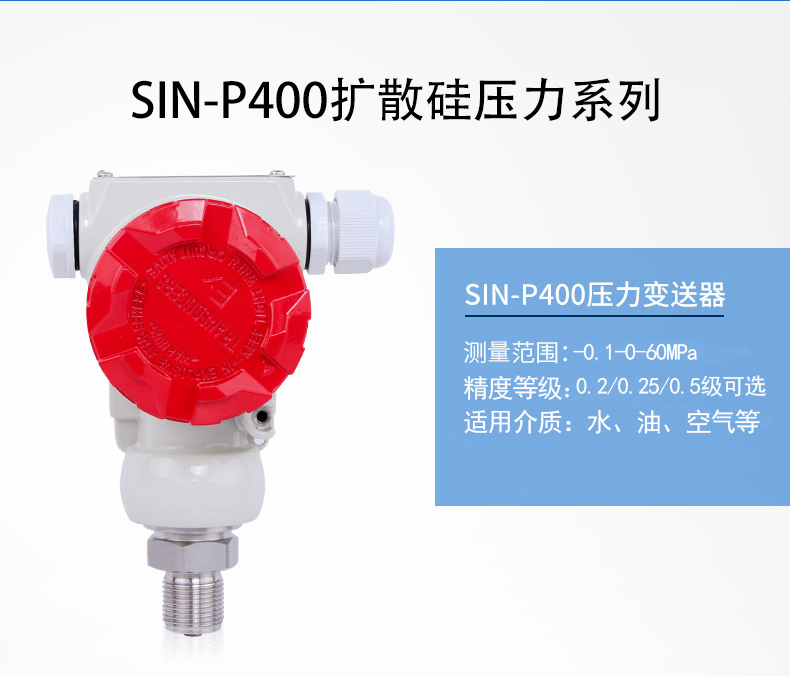 SIN-P400壓力變送器,采用全數字電路板,做到用戶可在一定范圍內自行現場修改量程,極大的方便了現場使用。